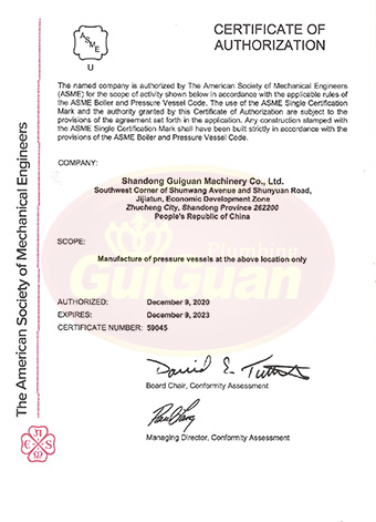 山東桂冠機械有限公司成立于2008年,注冊資金1600萬元,現(xiàn)有員工200多人,中高級技術管理人員45人,占地面積27000多平方米,生產(chǎn)車間面積12000多平方米。公司具備壓力容器產(chǎn)品的設計、制造(證書編號為:TS2237703-2025)、壓力管道安裝(證書編號為TS3837607-2025)全套壓力容器資質(zhì);通過國家ISO9001質(zhì)量管理體系認證、美國ASME認證、歐盟CE認證;擁有建筑安裝機電工程專業(yè)承包叁級資質(zhì)、建筑工程施工總承包叁級資質(zhì)及對外貿(mào)易經(jīng)營出口權…
